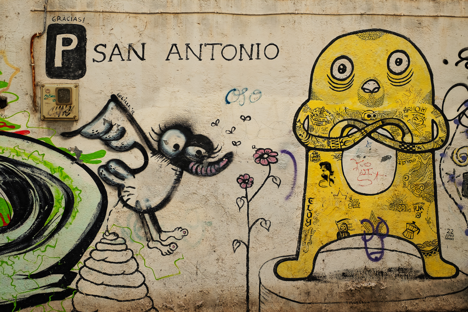 Man and graffitti, Bairro Alto, Lisbon, July 2017